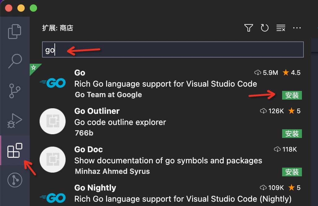 安装完成后,首次打开 go 文件右下角会提示安装依赖,去安装。