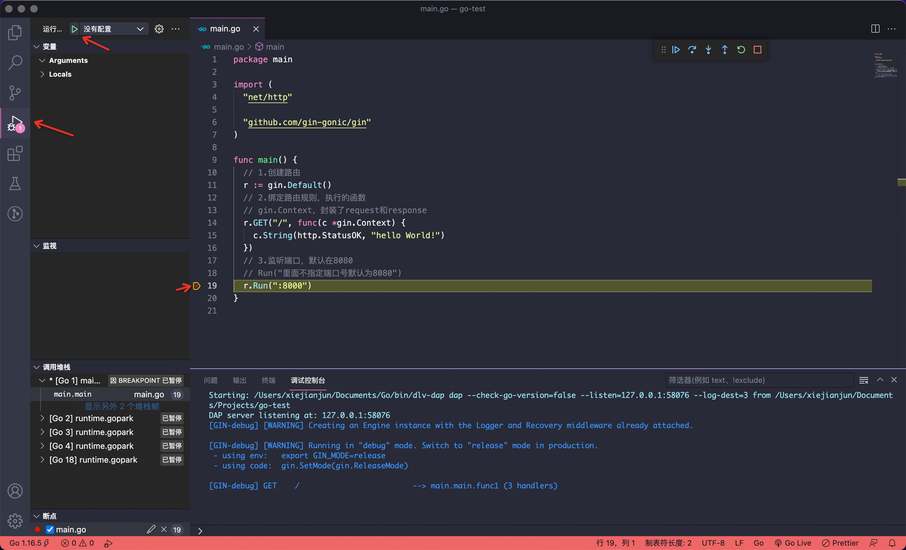 正确安装完 go 插件和依赖一般默认就可以调试。